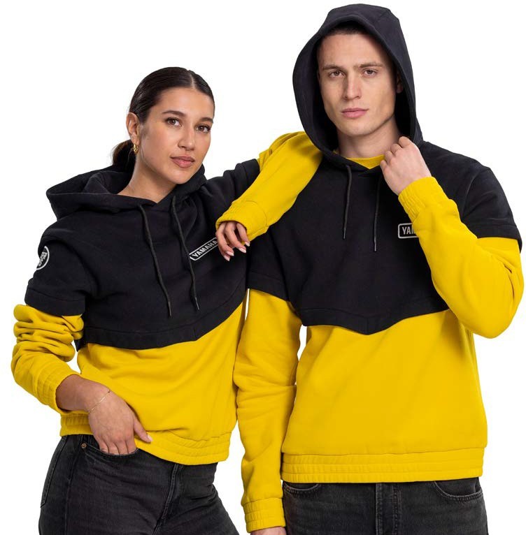 A bold, bumblebeestyle design in striking black, yellow and white, the Faster Sons Unisex Hoodie is an unmissable standout of the collection. Drawing inspiration from the latest XSR line, its lined drawstring hood provides comfort outdoors. Essential wearing for Faster Sons everywhere!